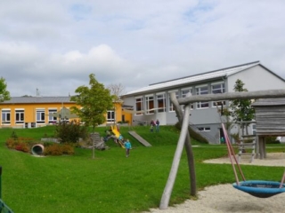Der zweigruppige Kindergarten wurde auf einem direkt neben der Volksschule gelegenem Grundstück errichtet, wodurch ein kompaktes Zentrum für Bildung und Sport in der Gemeinde entstand.